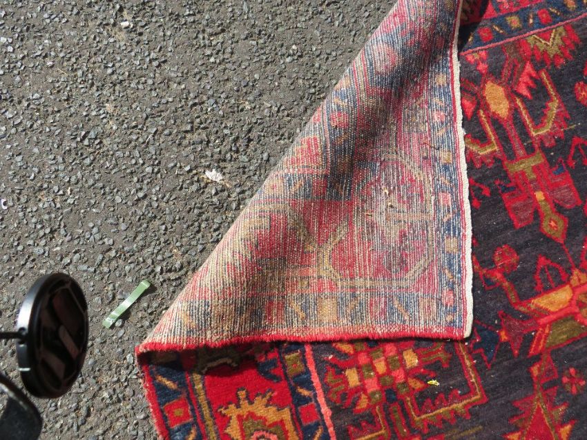 A VINTAGE EASTERN HAND KNOTTED WOOLLEN RUG APPROX 203 CM X 135 CM