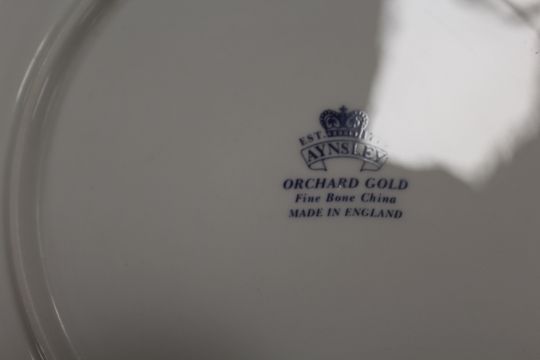 TWO TRAYS OF AYNSLEY ORCHARD GOLD , TO INCLUDE VASES, FRUIT BOWLS ETC