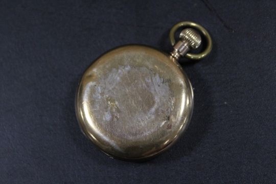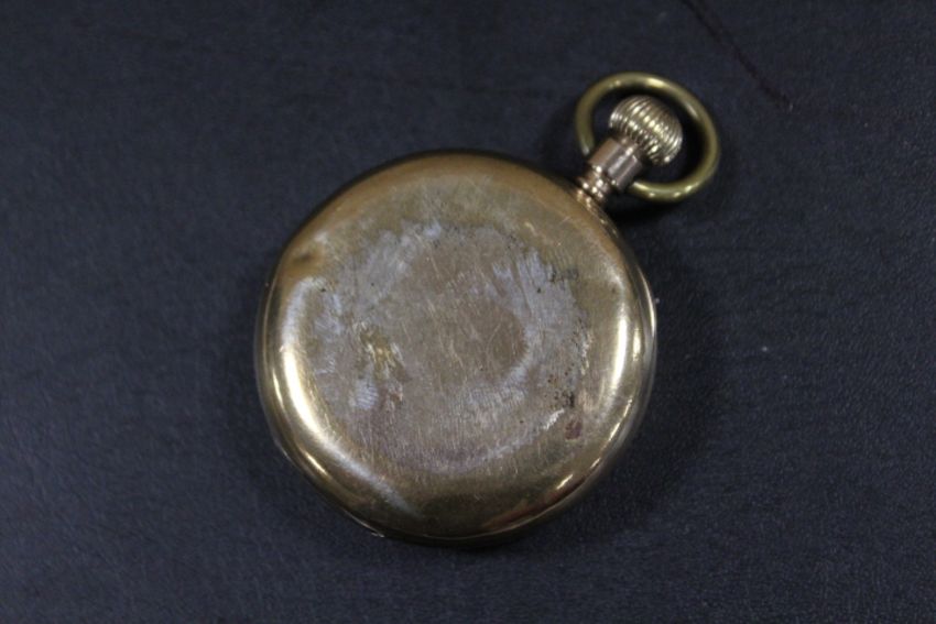 AN ANTIQUE MENS ROLLED GOLD POCKET WATCH BY WALTHAM
