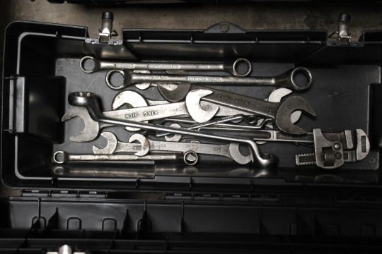 A TOOL BOX AND CONTENTS TOGETHER WITH A BLACK BOX AND CONTENTS (2)