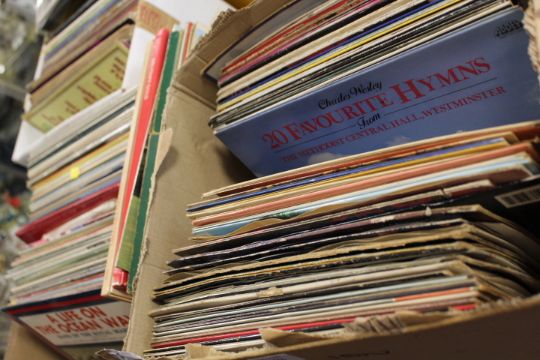 THREE TRAYS OF LP RECORDS TO INCLUDE CLASSICAL, EASY LISTENING AND BRASS BAND EXAMPLES