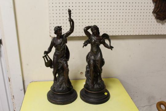 A PAIR OF FRENCH STYLE SPELTER TYPE FIGURES