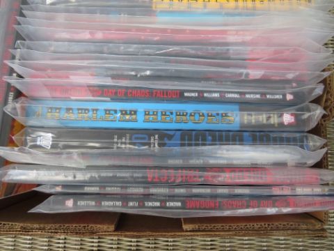 TWO TRAYS OF COMIC BOOKS, BOTH HARDBACK AND PAPERBACK, ALL IN EXCELLENT CONDITION, TO INCLUDE JUDGE DREDD, ROGUE TROOPER, ROBUSTER, ROBOHUNTER ETC (APPROX 75 IN TOTAL)