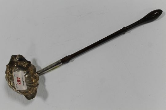 A 19TH CENTURY HALLMARKED SILVER LADLE, with turned wooden handle, overall L 32 cm