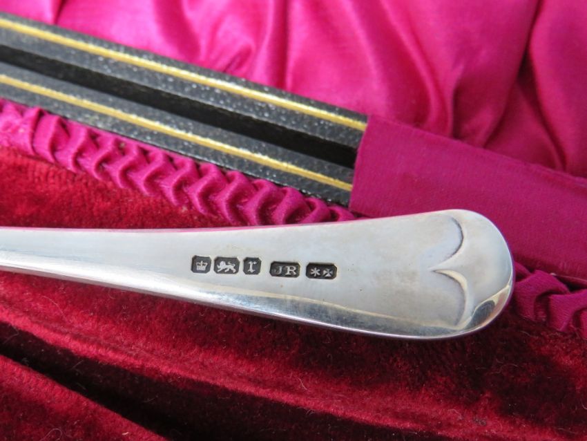A CASED HALLMARKED SILVER SPOON - SHEFFIELD 1909, makers mark for J.R, probably John Round and Son Ltd