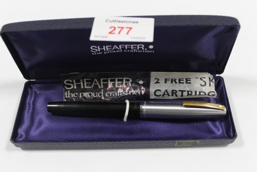 A VINTAGE CASED SHEAFFER FOUNTAIN PEN, with 14K gold nib,overall L 13 cm