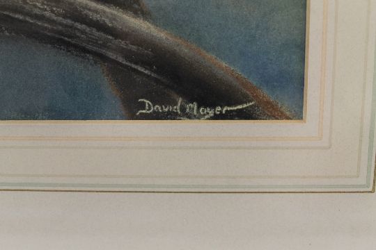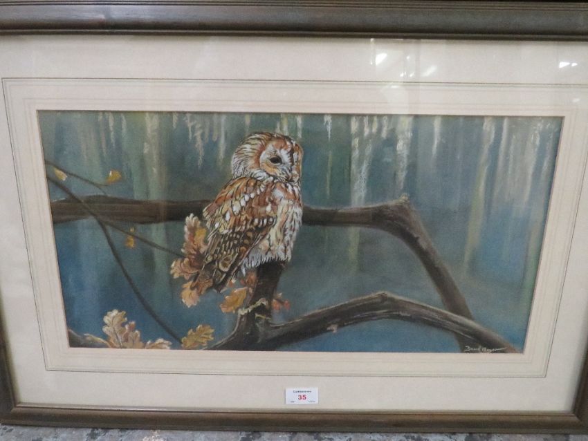 DAVID MAYER (XX). British school, study of a tawny owl perched on a branch, signed lower right, pastel on paper, framed and glazed, 26 x 52 cm