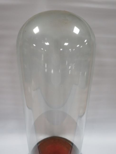 A TALL SLENDER GLASS DOME WITH EBONISED BASE, overall H 64 cm, base Dia. 26 cm