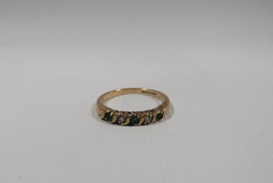 A HALLMARKED 9CT GOLD DIAMOND AND EMERALD ETERNITY RING, approx 1.85 g, ring size K