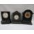 THREE ASSORTED MANTLE CLOCKS, comprising two wooden cased examples with striking movements and a bell strike black slate clock, tallest H 29 cm (3)