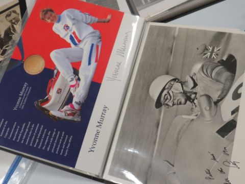 A COLLECTION OF SIX ALBUMS AND LOOSE SIGNED PHOTOGRAPHS, POSTCARDS AND LETTERS OF MAINLY SPORTSTARS, to include Greg Chappell x 9, Alan Border x 10, Mike Brearley x 7, W.G. Grace, Alf Ramsey, Lester Piggott, Gary Player, Stirling Moss, John Arlott, Jack Hobbs, Ray Lindwall, Richie Bernaud, Geoff Boycott, Terry Griffiths, John Spencer, Torvill & Dean, Ron Greenwood, Ted Lowe, Graham Taylor, Emlyn Hughes etc., together with a collecting autographs guide book