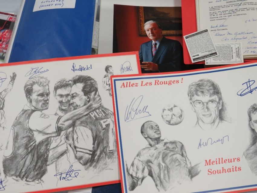 Condition Report: Please note: - The previous listed  Don Bradman x 5 are facsimile. The signed / autographed items in this lot are part of a private lifetime collection consigned by the deceased Daughter. There is no provenance other than the confirmation her Father was an avid postcard and autograph collector during his lifetime.