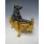 A 19TH CENTURY ORMOLU INKSTAND, the oval vessel raised on four paw feet, with three openings to the interior, the cover with a bronze seated hound, H 18 cm, W 26 cm