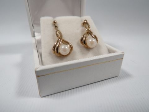 A PAIR OF 9CT GOLD AND PEARL EARRINGS, hallmarked to posts, only one butterfly marked 9ct, approx weight 2.46 g