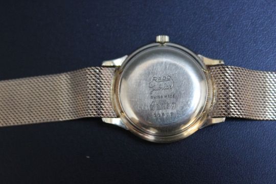 A HALLMARKED 14 CARAT GOLD RADO JUBILAR WRIST WATCH, with date window at 3 o'clock, approx weight 63.3g, Dia 4 cm