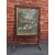 A 19TH CENTURY CARVED OAK FIRESCREEN WITH INSET WATERCOLOUR, carved with trailing vine leaves and grapes, raised on turned supports, the watercolour with nesting birds in a country landscape, H 96 cm, watercolour 54 x 42.5 cm