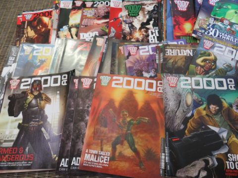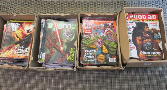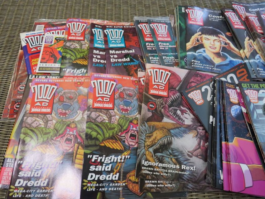 FOUR BOXES OF 2000AD JUDGE DREDD COMICS FROM MIXED ERAS TO INCLUDE 1992, 2007, 2013 ETC