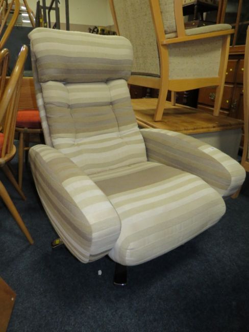 MODERN STRIPED UPHOLSTERED RECLINING ARMCHAIR
