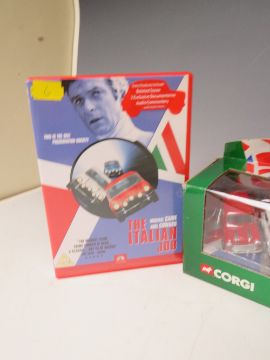 BOXED CORGI 'ITALIAN JOB' MINI ITEMS, to include Bedford coach and mini set 36502 and 3 x Mini / figures sets 04441 in red, white and blue