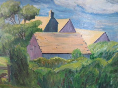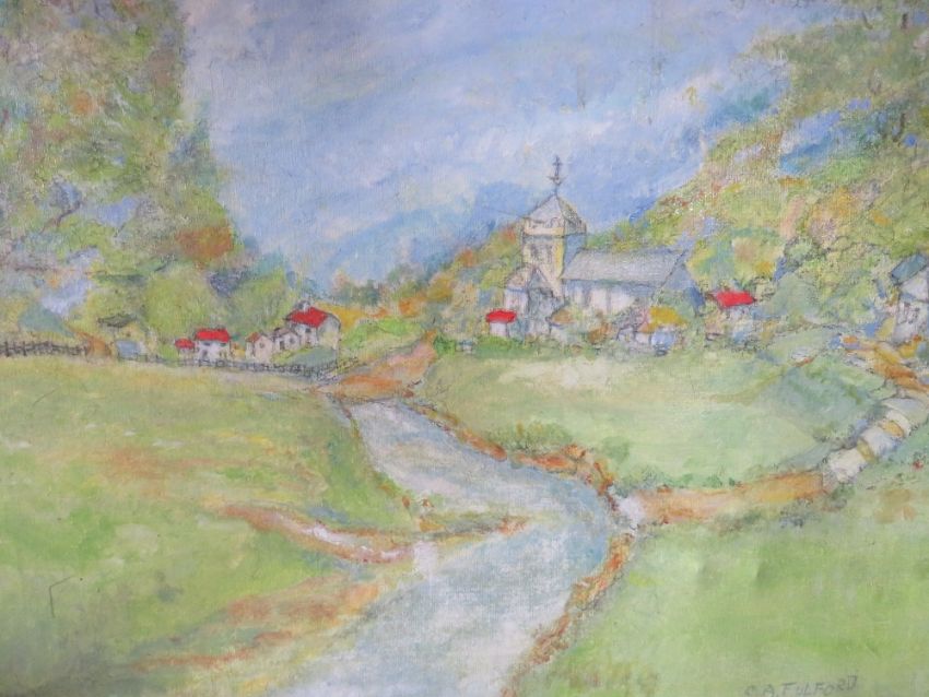 C.A. FULFORD (XX). British school, a pair of impressionist landscapes with buildings, signed lower left and lower right, oils on canvas, unframed, 51 x 61 cm, together with J.C. FULFORD (XX). British school, a pair of impressionist landscapes with buildings, signed lower left and lower middle, oils on canvas, unframed, 51 x 61 cm (4)