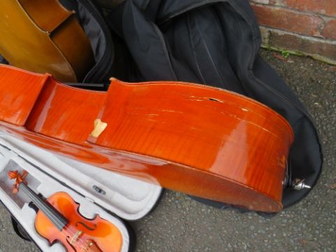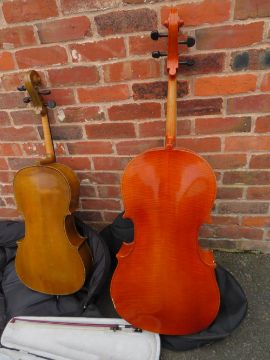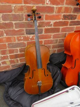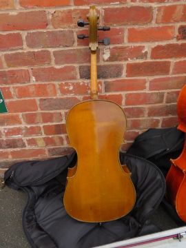 A VINTAGE 1/4 CELLO, A 1/2 SIZE CELLO AND A CASED 1/4 VIOLIN (3)