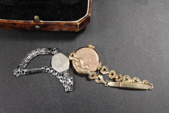 A VINTAGE BULOVA 10ct WHITE ROLLED GOLD WATCH PLUS ONE OTHER