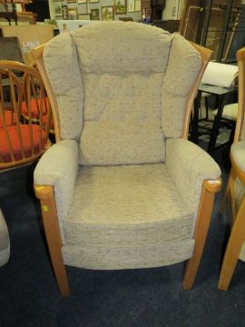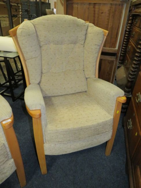 A PAIR OF MODERN ERCOL UPHOLSTERED ARMCHAIRS