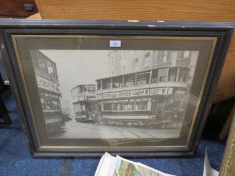 A FRAMED TRAM PRINT, AN OIL ON BOARD, PLUS VARIOUS ROLLED IMPRESSIONIST PRINTS