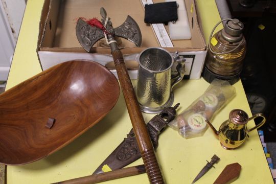 A QUANTITY OF SUNDRIES TO INCLUDE A VINTAGE LANTERN