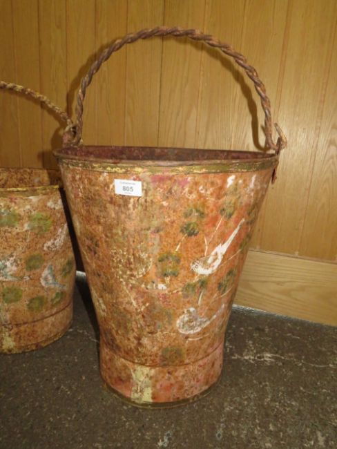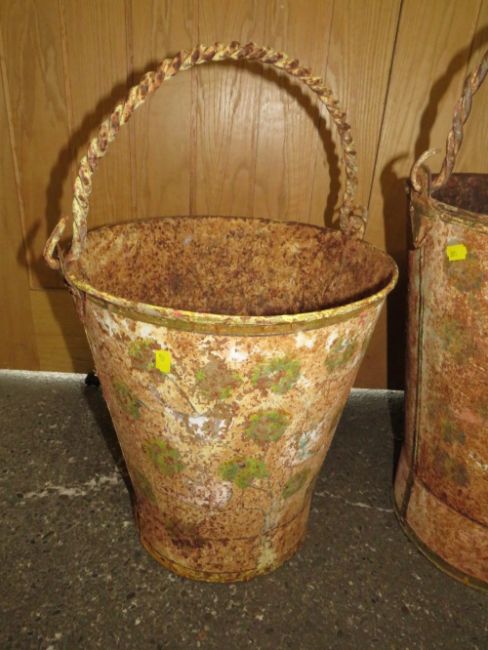 TWO LARGE VINTAGE STYLE METAL BUCKETS - LARGEST H 47 cm EXCLUDING HANDLE