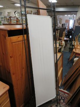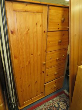 A MODERN PINE CABINET, DESK AND STOOL, MIRROR, SCREEN AND FLAT PACK WARDROBE