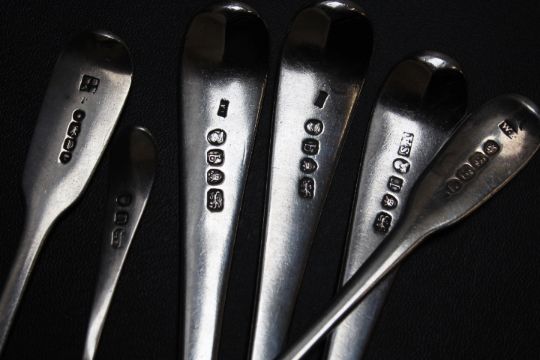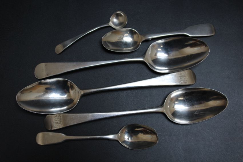 A COLLECTION OF ASSORTED HALLMARKED SILVER FLATWARE, various styles, dates and makers, approx combined weight 224g, longest 21.5g (6)