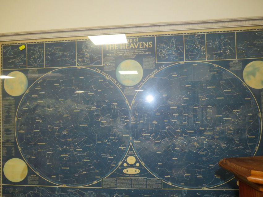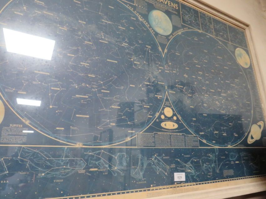 A LARGE FRAMED AND GLAZED 'A MAP OF THE HEAVENS', 75 X 111 CM