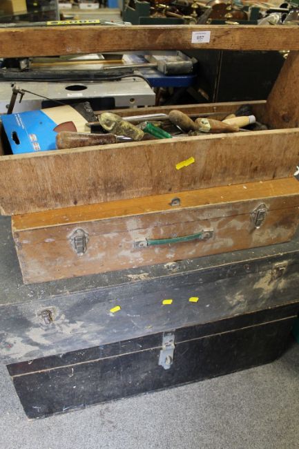 FOUR CARPENTERS TOOL BOXES AND CONTENTS (TOOLS)
