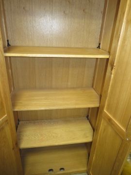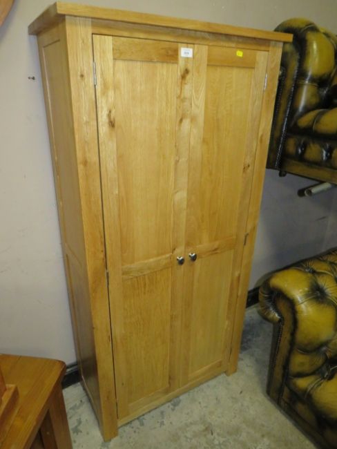 A MODERN TWO DOOR OAK EFFECT CUPBOARD - H 151 cm, W 75 cm