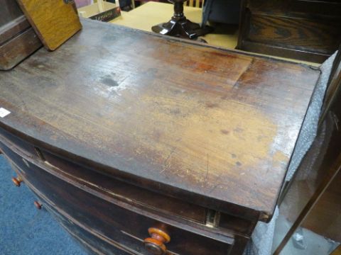 A VICTORIAN MAHOGANY BOW FRONT CHEST A/F