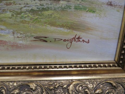 A GILT FRAMED OIL ON CANVAS OF A COUNTRY COTTAGE SCENE SIGNED LOWER RIGHT "S DAUGHTERS "