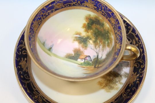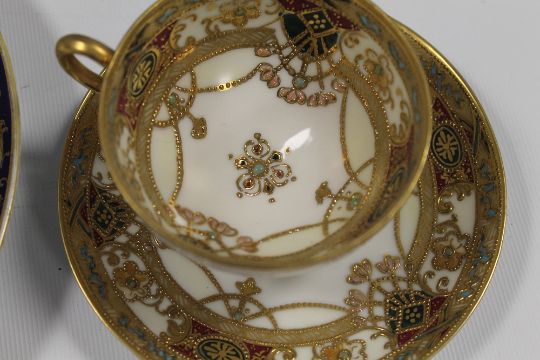 A COLLECTION OF NORITAKE CERAMICS, comprising a cake plate, five assorted cabinet cups and saucers, small basket, two side plates and a long oval basket (16)