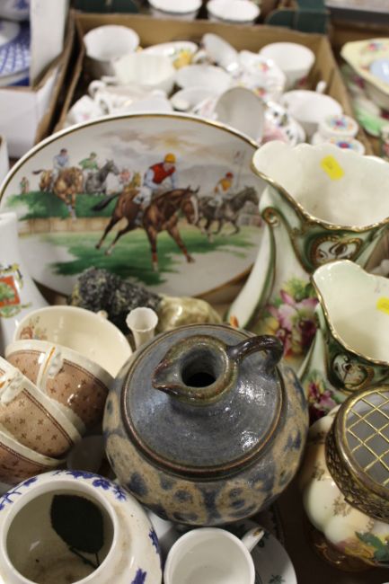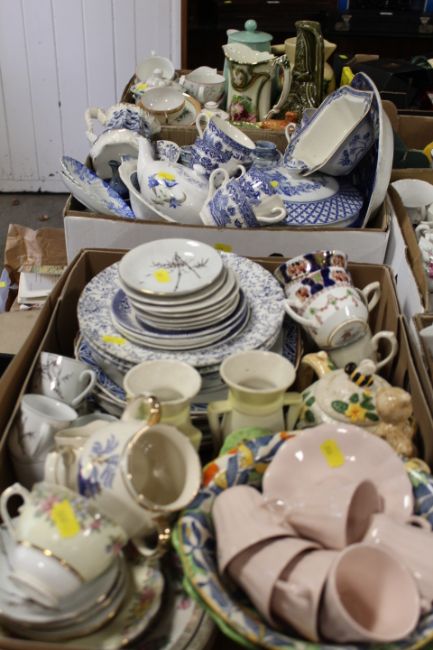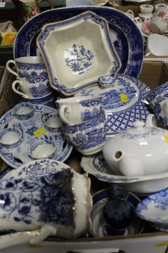 FIVE TRAYS OF ASSORTED CERAMICS TO INCLUDE A TRAY OF BLUE & WHITE WARE ETC
