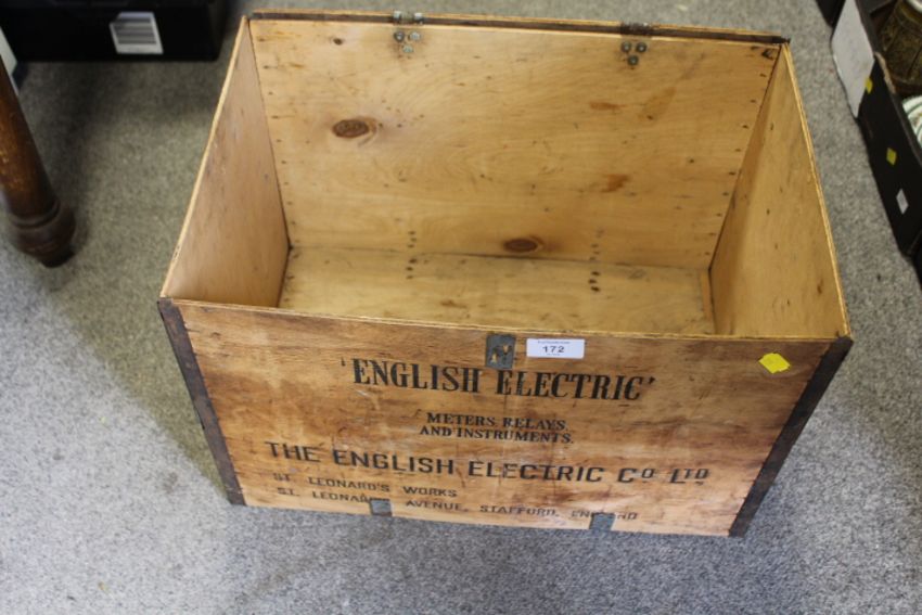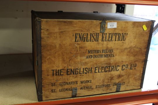 LOCAL INTEREST - VINTAGE ENGLISH ELECTRIC COMPANY LTD ST LEONARDS WORKS STAFFORD WOODEN STORAGE CRATE