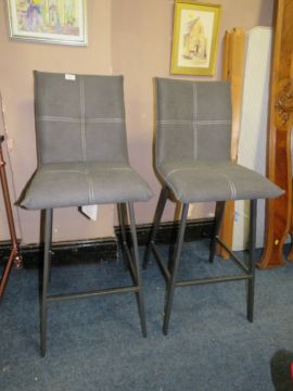 A PAIR OF MODERN UPHOLSTERED KITCHEN STOOLS