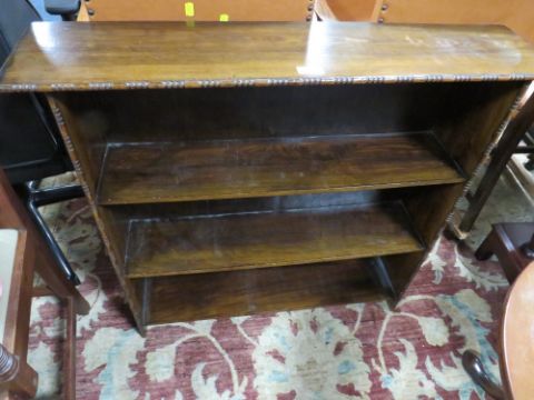 AN OPEN SET OF OAK BOOKSHELVES AND A GILT MIRROR (2)