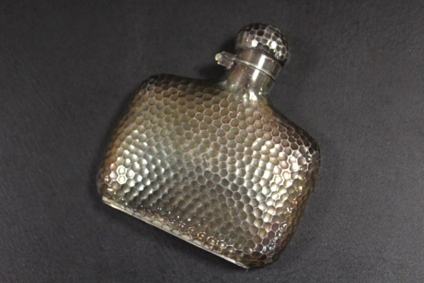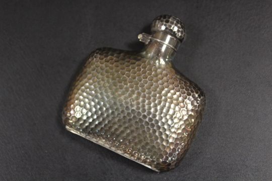 ANTIQUE SILVER PLATE SPIRITS FLASK
