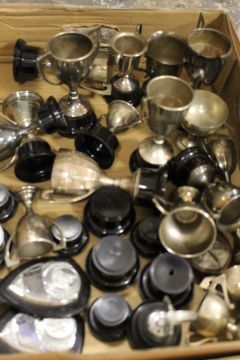 TWO TRAYS OF VINTAGE MOTOR RALLY TROPHIES ETC
