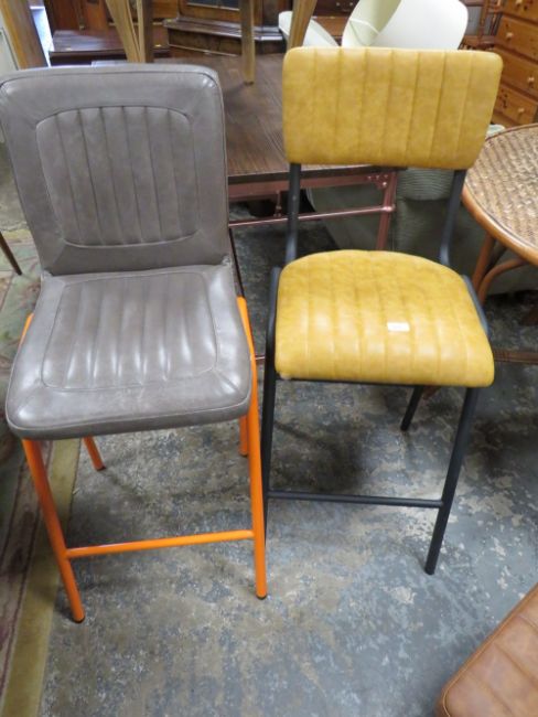 TWO MODERN LEATHER BAR / KITCHEN STOOLS