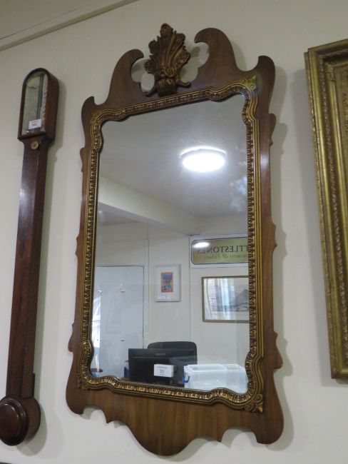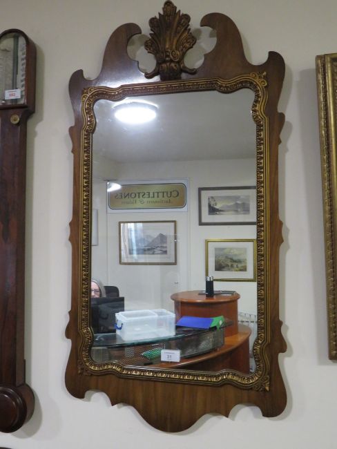 A GEORGIAN STYLE WALL MIRROR TOGETHER WITH A WALNUT AND GILT FRAMED EXAMPLE (2)