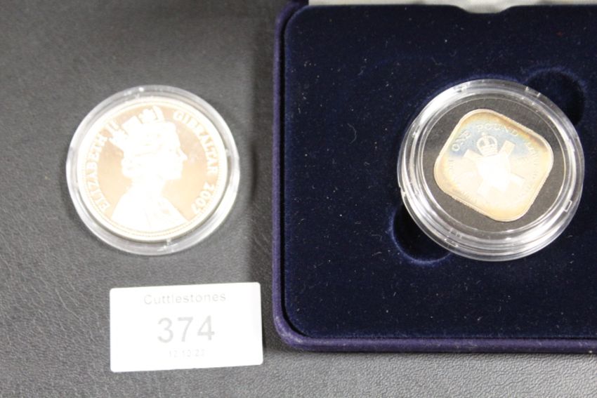 SILVER PROOF £1 AND £5 COINS