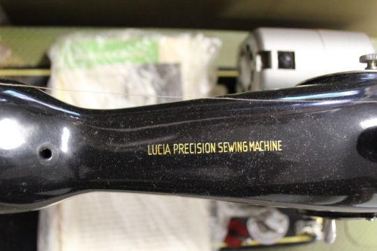 A VINTAGE CASED LUCIA SEWING MACHINE
