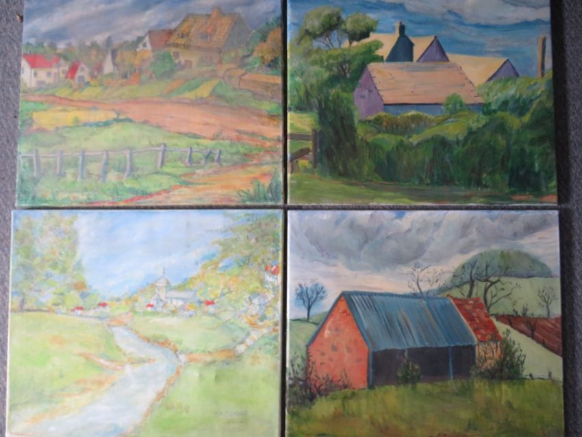 C.A. FULFORD (XX). British school, a pair of impressionist landscapes with buildings, signed lower left and lower right, oils on canvas, unframed, 51 x 61 cm, together with J.C. FULFORD (XX). British school, a pair of impressionist landscapes with buildings, signed lower left and lower middle, oils on canvas, unframed, 51 x 61 cm (4)