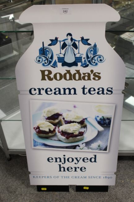 A MODERN METAL ADVERTISING SIGN FOR RODDA'S CORNISH CREAM TEAS